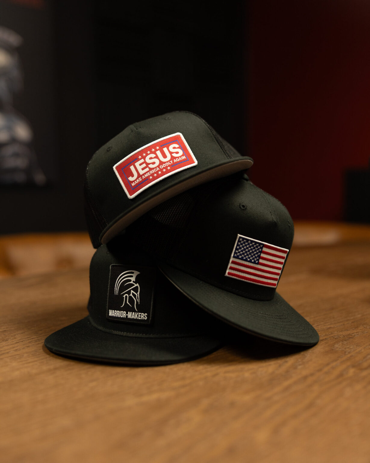Bold, structured, and built to represent what you stand for — the Lead Flat-Bill Trucker Hat combines a clean, modern profile with all-day comfort. Featuring a flat yet flexible bill and classic trucker construction, this hat delivers a confident look without sacrificing wearability. Available in three powerful variations — Warrior Makers logo, American Flag, or “Make America Godly Again” stitched patch — each design makes a statement rooted in strength, faith, and patriotism. Finished with an adjustable snapback for a one-size-fits-all fit, this hat is made to be worn with purpose, wherever the day takes you.